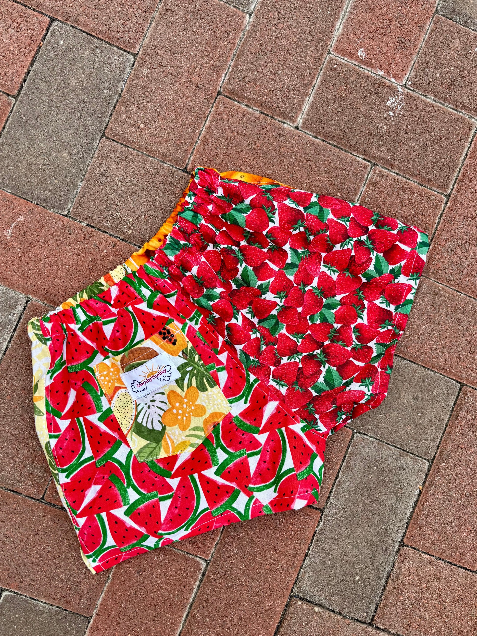 All the best novelty prints combined to make the cutest summer shorts. This pair is for a size SMALL. The size range is for a waist of 24.5” to 26”” inches hips of 35.5” to 37” inches